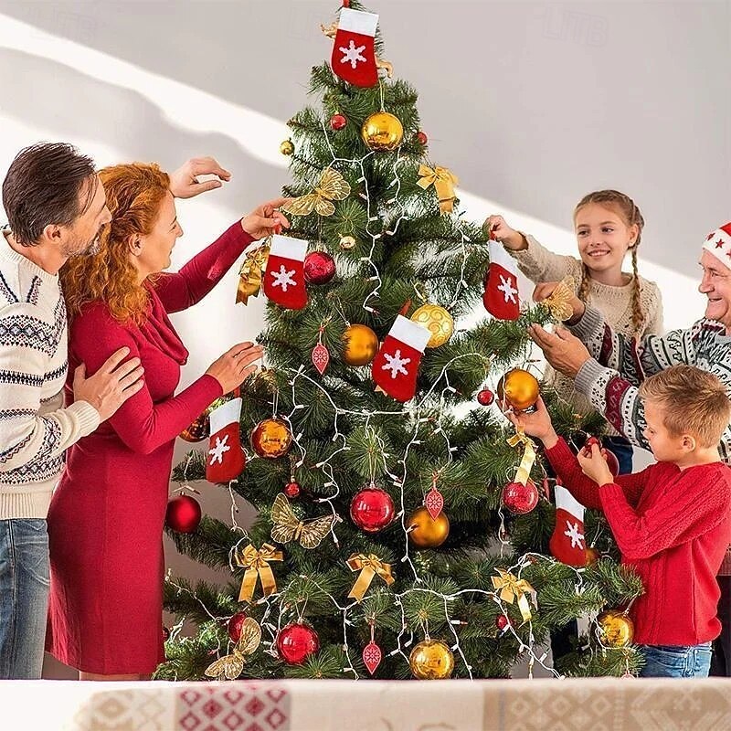 Why Choose 12/24pcs Mini Christmas Stockings Knife Spoon Fork Bag Christmas Decoration Snowflake Socks Ornaments Mini Cutlery Holders Small Hanging Stockings?