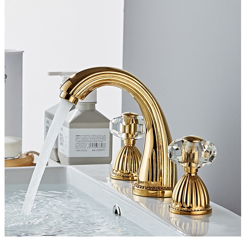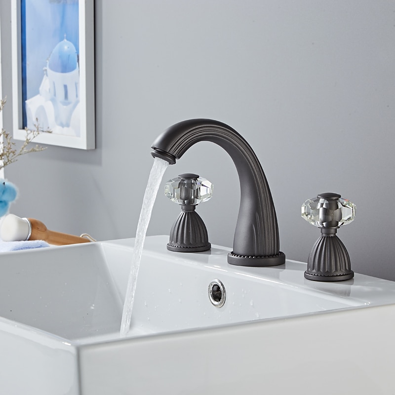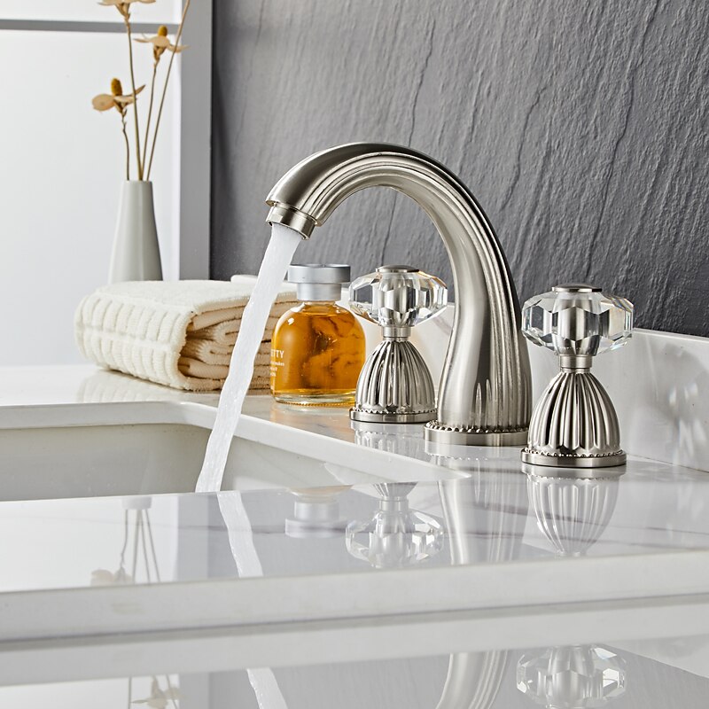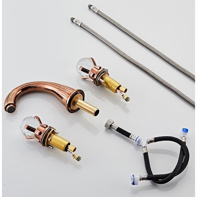 Why Choose Widespread Bathroom Sink Mixer Faucet, Brass Basin Taps 2 Handle 3 Hole Retro Style Crystal Handle, Washroom Bath with must-have and Cold Water Hose?
