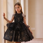 Princess Knee Length Flower Girl Dress Pageant & Performance Girls Cute Prom Dress Sequined with Solid Color Tiered Plisse Fit 3-16 Years