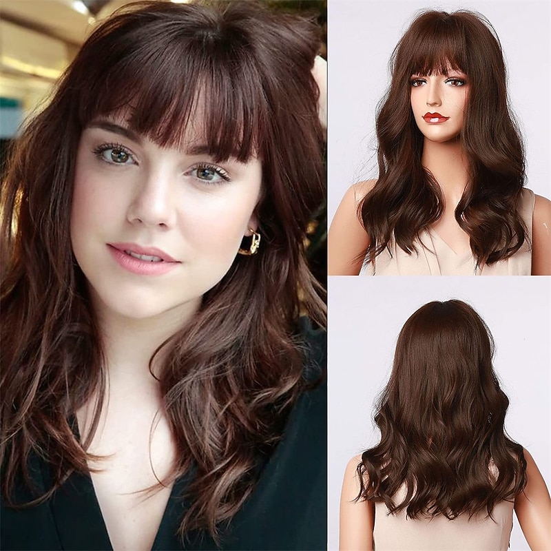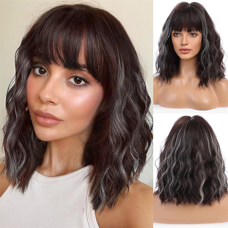 $24.99 - Brown Wig with Highlight Bob Wigs with Bangs Shoulder Length Wavy Wig Middle Part Hair Wig for Women Christmas Party Wigs 2025. Shop for cheap Synthetic Trendy Wigs online? Buy at lightinthebox.com on sale today!