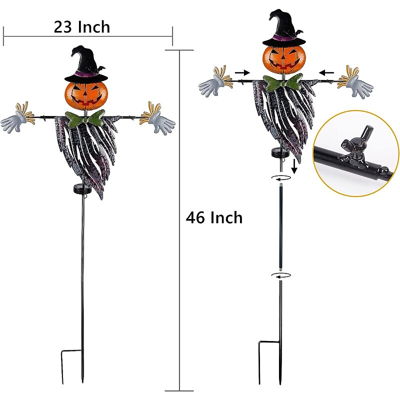 More information about Solar 41Inch Solar Halloween Decorations Yard Stake Solar Powered Outdoor Lighted Metal Pumpkin Scarecrow Stake Light Up Pumpkin Lantern Yard Sign for Autumn Haunted House Figurine Party Decor