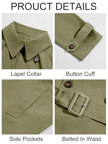 Runcati Mens Trench Coat Double Breasted Belted Windbreaker Jackets Lapel Lightweight Long Jacket Casual Overcoat
