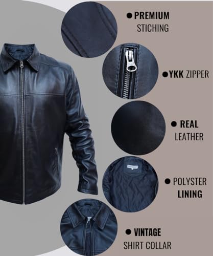 Fabric type: 100% Lambskin LeatherCare instructions: Dry Clean OnlyOrigin: Imported✔️ Please refer to the size chart provided in the product description before placing your order. To ensure the best fit, kindly review the size chart carefully.✔️ HANDCRAFTED EXCELLENCE: Made from genuine 100% lambskin leather, this black leather bomber jacket men embodies superior craftsmanship. Each stitch and cut radiates precision, showcasing the attention to detail we pride ourselves on.✔️ FEATURE-RICH DESIGN: With a top-grade YKK zipper and satin inner lining, practicality meets elegance. Our leather jacket mens includes multiple pockets provide ample storage without compromising the sleek silhouette.✔️ ADAPTABLE ELEGANCE: Transition from day to night effortlessly. Men's leather moto jacket is the versatile piece fits for all occasions—business meetings, casual outings, and more, making you the centre of attention.✔️ CUSTOMER FIRST: Your satisfaction is paramount. We're confident in our craftsmanship, and thus, we back our product with a prompt, hassle-free Money-Back Guarantee.⚠️NOTE: We strive to display the colors of our jackets as accurately as possible in our images. However, due to variations in monitor settings, lighting conditions, and other factors, the actual color of the jacket may have a very minor difference from what you see on your screen. We appreciate your understanding and assure you that the quality and design of our jackets remain consistent with our descriptions. ideal for everyday use. first-class materials and excellent craftsmanship ensure long-lasting durability.