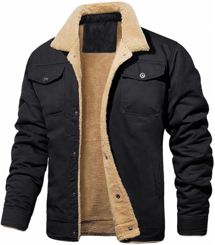 DESIGN -- Regular fit, traditional lapels, two chest pockets with buttons, a great choice for men's winter shirts. Thick wool sherpa lining. Soft and comfortable, mid-weight and warmMATERIAL -- Men's Sherpa Fleece Cotton Shirt Jacket, Made of premium material, lined with wool sherpa, warm, comfortable, durable and windproofWARM PROTECTION -- Constructed with comfortable flannel corduroy fabric, this splicing shirt has both warmth and breathability to keep you thermal in chill weather. Wear alone or with additional layers in cooler temperaturesEASY MATCH -- With its cozy fleece fabric and practical features, our jacket is a must-have for staying warm and fashionable during the colder months. It can be pired with normal tee tops, shirts, jeans or sweatpants for work and casualVERSATILE -- This men's fleece jacket is perfect for any occasion. Designed for versatility, this cold-weather staple can be paired over your favorite T-shirt and jeans Perfect for everyday use. High quality materials and excellent craftsmanship ensure long-lasting durability.