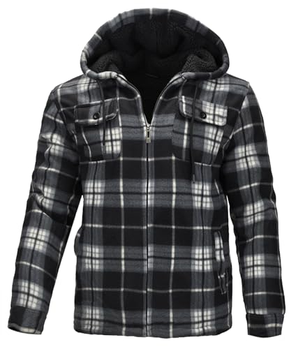 Men’s Winter Zip Up Hoodie Sherpa Fleece Plaid Jacket Drawstring Flannel thermal Sweatshirts Thick Heavyweight Coat