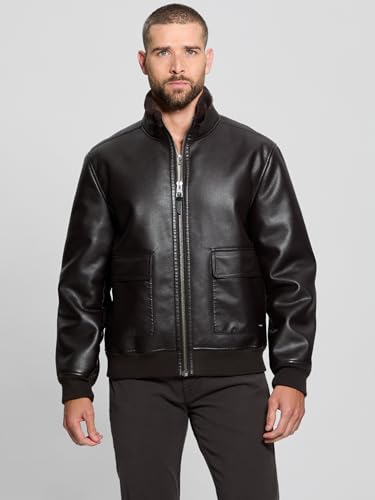 trending ! GUESS Men's Ryder Bonded Faux Leather Zip Jacket