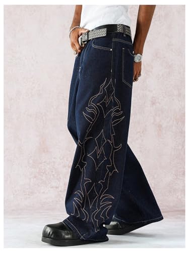 More information about Men's Graphic Baggy Jeans Hip Hop Wide Leg Denim Pants with Pockets Streetwear