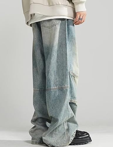 Fabric type: 100% PolyesterOrigin: ImportedRise style: Low RiseLeg style: Wide【Material】High-quality polyester fiber. This Y2k baggy jeans men wide leg skater pants hip hop jeans for men using premium fabric, lightweight and breathable.【Style】men baggy jeans,grunge jeans,baggy jeans y2k,y2k pants men,hip hop jeans streetwear men,y2k jeans men,straight-leg jeans,mens wide leg pants, y2k clothes men,baggy jeans women,designed with a wide leg skater style, offering a comfortable and fashionable fit with a straight and relaxed silhouette.【Match】Y2k baggy jeans for men wide leg skater denim pants vintage jnco jeans Pair this baggy y2k jeans men with anything in your closet, such as crop tops, basis t-shirts, cool jackets, hoodies, sweatshirt.【Occasion】Y2k jeans men loose straight leg skateboard denim pants streetwear baggy y2k jeans with the perfect length, for daily wear, street, school, hip hop dance, sports, workout, jogging, running, hiking or any outdoor activities.【Size】: S/ M/ L / XL.All matched,Y2k baggy jeans for men vintage skater jeans hip hop cargo pants, y2k pants men,baggy mens jeans,jeans y2k traditional basic versatile. Perfect for everyday use. premium materials and excellent craftsmanship ensure long-lasting durability.