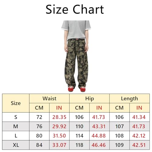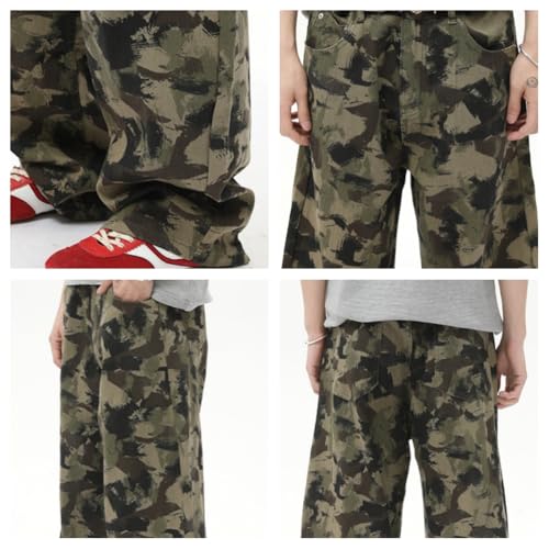 Fabric type: 100% DenimCare instructions: Machine WashOrigin: ImportedClosure type: ButtonMaterial: Men's loose-fit jeans are made from premium denim fabric that's breathable and comfortable, perfect for streetwear.Styles: Camouflage work jeans, hip-hop pants, men's straight-leg jeans, with a relaxed fit, traditional pockets, and a button-and-zipper closure.Pairing: Y2K loose-fit jeans pair perfectly with leather jackets, plaid shirts, sweatshirts, T-shirts, sneakers, and even dress shoes.Suitable Occasions: Office, work, travel, formal occasions, school, dates, hiking, parties, and more.Note: Loose-fit men's jeans are available in S/M/L/XL. Please refer to the size chart in the description to select your normal size or the next size up. Perfect for everyday use. premium materials and excellent craftsmanship ensure long-lasting durability.