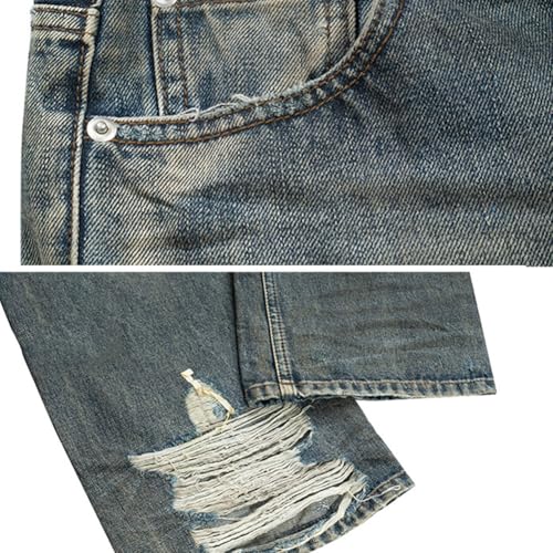 Fabric type: 97% cotton,3% spandexCare instructions: Machine WashOrigin: Imported(θΏε£)Closure type: Zipper[Design] These street style jeans feature vintage-inspired distressed details with intentional hole designs at the hem for an edgy urban look.[Fit] Straight leg cut provides a balanced silhouette that suits most body types, offering both comfort and contemporary style.[Material] Made from high-quality denim fabric that combines durability with softness for all-day comfort.[Versatility] Perfect for creating layered outfits, these retro jeans pair well with sneakers, boots or casual shirts.[Occasion] Ideal for casual wear, street fashion, daily outings or adding a rebellious touch to your wardrobe. Perfect for everyday use. premium materials and excellent craftsmanship ensure long-lasting durability.