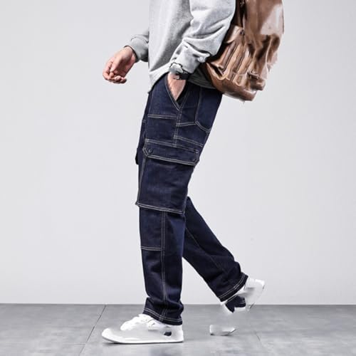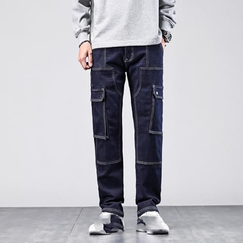 Jeans Pants Trouser Denim High Street Workwear Men's Blue Logging Multi Bag Heavy-Duty Functional Wide Leg