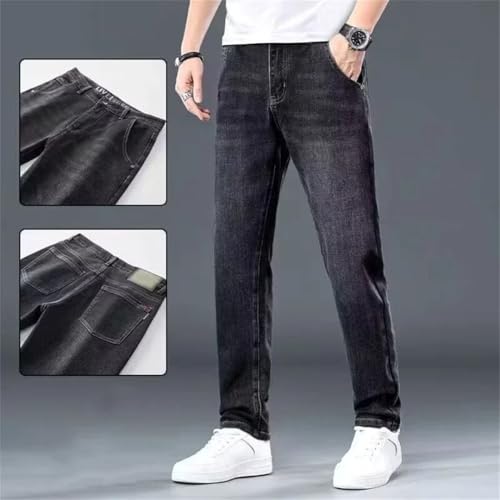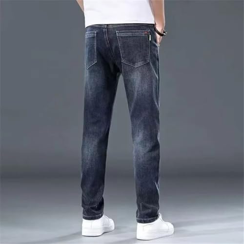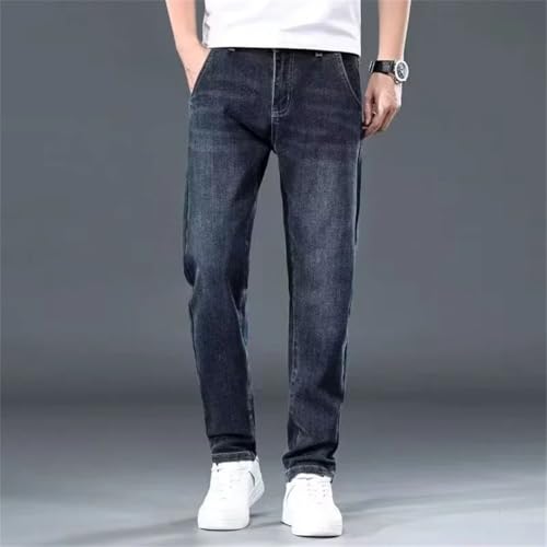 Men Baggy Straight Leg Wash Denim Pants Middle-Waisted Denim Trousers Business Jeans