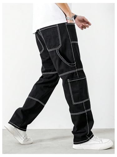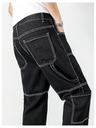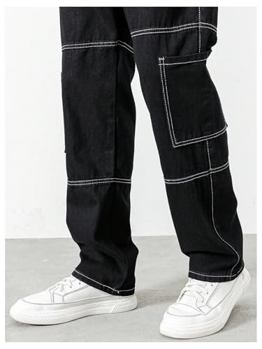 More information about OYOANGLE Men's Flap Pocket Cargo Jeans Zipper Fly Straight Leg Denim Pants Streetwear
