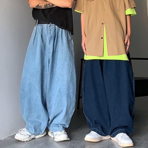 FCOOLYEET Men's Blue Baggy Y2k Vintage Skater Jeans Oversized Skateboard Denim Pants Wide Leg Jnco Jeans Streetwear