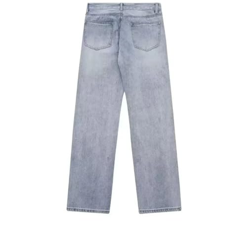 trending ! Men’S High Street Trendy Hole Worn Loose Fit Straight Denim Pants Button Fly Midweight Distressed Full Length Jeans