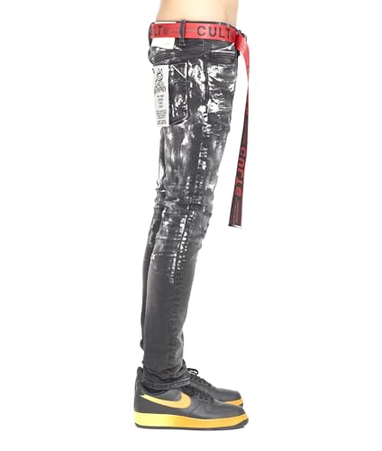 trending ! Men's Punk Super Skinny Belted in Painter