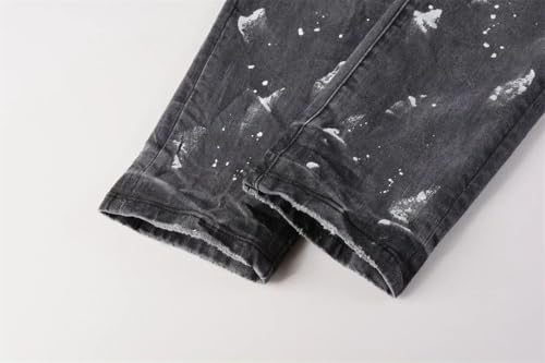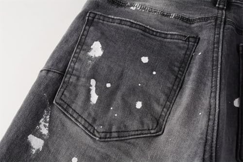 Men’S Y2K High Street Ripped Paint Repair Skinny Pencil Pants Slim Fit Button Fly Slight Stretch Appliques Jeans