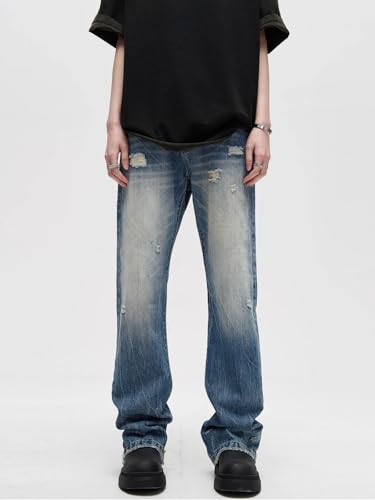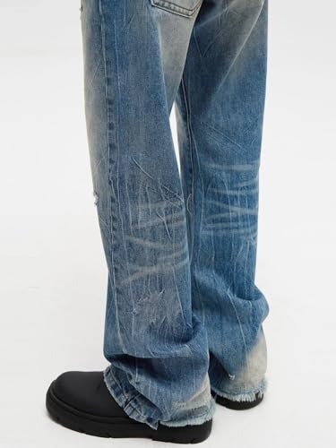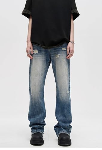 GUOYUXIAO Men's Jeans High-Street Flared Denim Pants for Men American-Style Straight-Leg Pants Trouser for Men