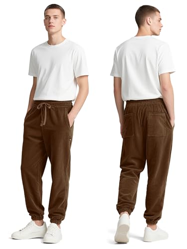 • LOOSE FIT DESIGN—— This brown corduroy pants for men features a drawstring design, elastic waist, and tapered cut, creating a casual and new-age appearance. Multiple pockets provide secure storage space for mobile phones, keys, or wallets