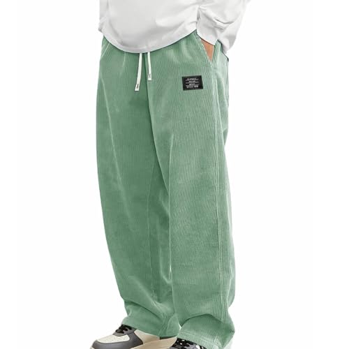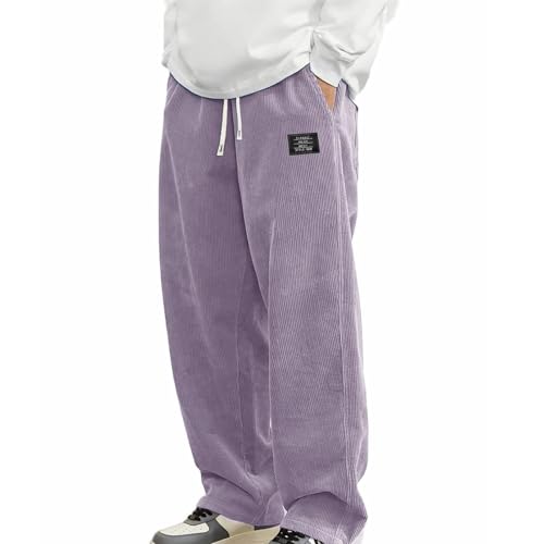 trending ! Mokaloha Mens Corduroy Pants, Men's Pit Strip Corduroy Fabric Embroidery Logo Tether Loose Elastic Waist Pocket Pants