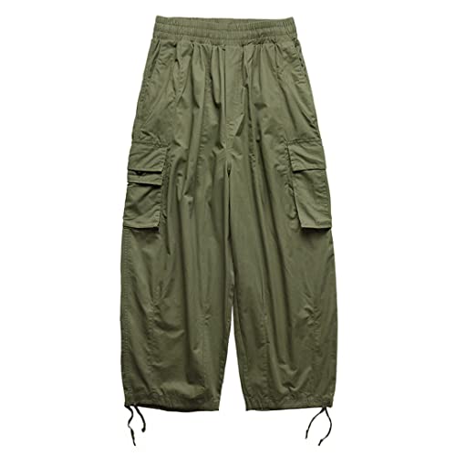 Pulcykp Multi-Pocket Cargo Pants Men's Casual Solid Colour Straight Pants Baggy Wide-Leg Cropped Pants