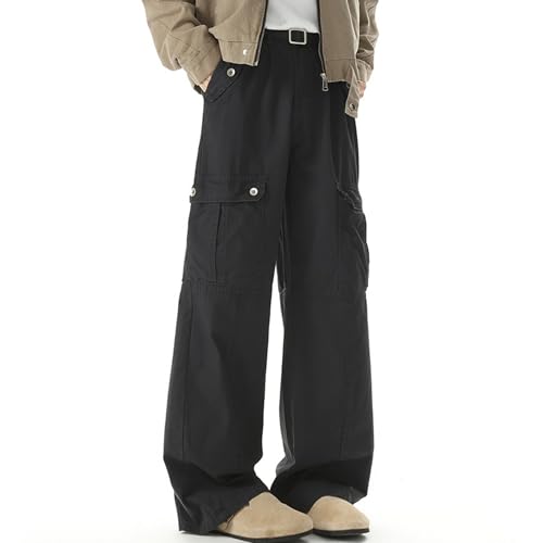 XYXIONGMAO Men's Black Streetwear Joggers Hip Hop Casual Sweatpants Multi-Pocket Cargo Pants Loose Techwear Pleated Overalls
