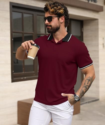 Fabric type: 95% Polyester, 5% ElastaneCare instructions: Machine WashOrigin: ImportedClosure type: ButtonMaterial: This mens polo shirts is made from a blend of 95% polyester and 5% elastane, offering a smooth and fine texture that enhances flexibility for men during outdoor activities and workDesign: It features a traditional casual polo design with two-button closure and contrasting color on the collar and cuffs, adding a sense of design and fashion to the garment. The pocket on the left chest is convenient for holding small items like keys, Bluetooth earphones, and more2025 NEW UPGRADE: The pocket polo has new upgrade of fabrics, size and styles.The fabric is more lightweight and breath, and it is one of the essential fashion items in a man's wardrobe.Occasions: Suitable for business offices, weekend games, indoor workouts, outdoor sports, fishing, tennis, golf, and more; this men quick-dry polo makes an ideal gift for family and friendsTips: The pack includes 5 mens collared summer polo shirts that can be machine washed at room temperature and ironed at low heat. Choose your suitable size according to the provided size chart Perfect for everyday use. premium materials and excellent craftsmanship ensure long-lasting durability.