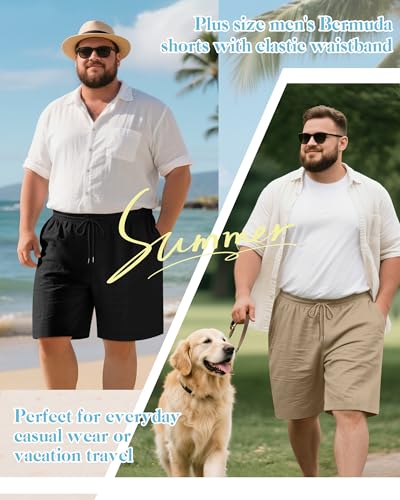 Fabric type: 70% Cotton, 30% LinenCare instructions: Machine WashOrigin: ImportedRise style: High RisePlus-size Comfort Style: the 7-inch in seam cotton linen shorts are made from a breathable and lightweight fabric 70% Cotton, and 30% Linen, offering softness; Designed to keep you cool these shorts are ideal for summer relaxation or outdoor activitiesConvenient Slash Pockets: equipped with two spacious side slash pockets, big and tall shorts offer easy access to your essentials like your phone, wallet, or keys; The angled openings along the side seams provide both functionality and a sleek, contemporary lookClassic 2-pack Design: this set of plus-size men's bermuda shorts features an elastic waistband for easy wear and a flexible fit; Perfect for daily leisure, sports activities, or vacation travels, the two-pack ensures you have a reliable backup or shareAdjustable Drawstring Waist: the drawstring design of shorts can be easily adjusted to a comfortable fit to meet your personalized needs; Whether lounging or engaging in outdoor sports, these shorts will keep you comfortable with their customizable fit7-Inch Inseam Shorts: these summer shorts are suitable for casual wear, beach trips, running, cycling, or fishing; Their versatile style pairs perfectly with Hawaiian shirts, t-shirts, or denim jackets, giving you effortless options for various occasions Perfect for everyday use. first-class materials and excellent craftsmanship ensure long-lasting durability.