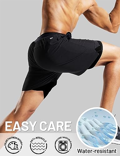 MIER Men's 2 in 1 Running Shorts with Liner 5" rapid Dry Gym Workout Athletic Shorts with Pockets, Lightweight, Breathable