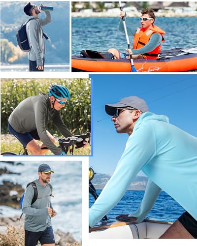 Fabric type: 100% PolyesterCare instructions: Machine WashOrigin: ImportedClosure type: Pull OnSuperior UV Protection: Crafted with UPF 50+ premium fabric, this sun hoodie effectively blocks 98% of UVA/UVB rays, providing reliable protection for your skin even during long hours under the sunBreathable & Quick Dry: Made of premium pinhole mesh fabric that breathable and lightweight, quick-drying, and moisture-wicking, promoting superior airflow, prevents sweat buildup, and keeps your body coolComprehensive Sun Coverage: Hooded design, long sleeves, and thumb holes provide extra sun protection to protect your neck, arms, and hands, making you can stay focused on your activities without worrying about sunburn or shifting sleevesComfort & Ergonomic Design: The raglan sleeves conforms to the natural shoulder curve and provides a broader range of motion. Flat lock seams and no tag collar for added comfort, enhancing flexibility and minimizes irritation for a distraction-free experienceVersatile for All Adventures: Suitable for a variety of water and land-based activities such as fishing, hiking, athletic, beach, boating, camping, swimming, running, and workout etc. It's a impeccable choice among athletes, travelers, and outdoor enthusiasts alike Perfect for everyday use. premium materials and excellent craftsmanship ensure long-lasting durability.