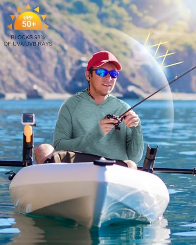 Roadbox UPF 50+ Fishing Shirts for Men, Long Sleeve UV Sun Protection Lightweight Rash Guard Hoodie for Hiking Workout