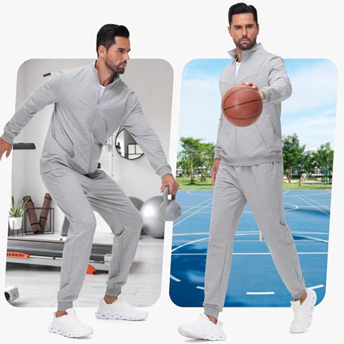 trending ! JWM Men's Cotton Sweatsuits - Full Zip Sweat Shirts & Jogging Track Athletic Running Loungewear Casual Suits 2 Piece Set