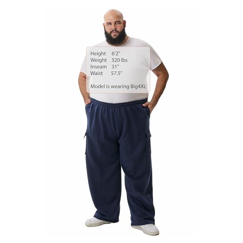Fabric type: 85% Poly, 15% CottonCare instructions: Machine WashOrigin: Made in the USAClosure type: Drawstring[SIZE] The model is wearing Big4XL / Model's size is 57.5 Waist, 31 Inseem, 6'3 Height, 320 Lbs // Check Size Charts for Correct Measurements, located below the color name or in the product description section.[MADE IN USA β BUILT FOR BIG & TALL MEN] Proudly made in the USA with a roomy, relaxed fit tailored for sizes Big & Tall 3XL to Big & Tall 7XL.[FABRIC] Crafted from 85% polyester / 15% cotton fleece for the ideal balance of warmth, softness, and breathability. [DURABLE & EASY TO CARE] Machine washable and fade-resistant β built to handle daily wear with long-lasting quality.[STYLE] Relaxed Fit, High Rise, Straight Leg. [SMART STORAGE & COMFORT WAIST] 2 cargo pockets, 2 front pockets, 1 back pocket, and a hidden drawstring waistband for secure storage and a cozy, adjustable fit.[ATHLETIC & DAILY COMFORT] Perfect for workouts, lounging, walking, or casual outings with an elastic waistband and drawstring closure. Perfect for everyday use. first-class materials and excellent craftsmanship ensure long-lasting durability.
