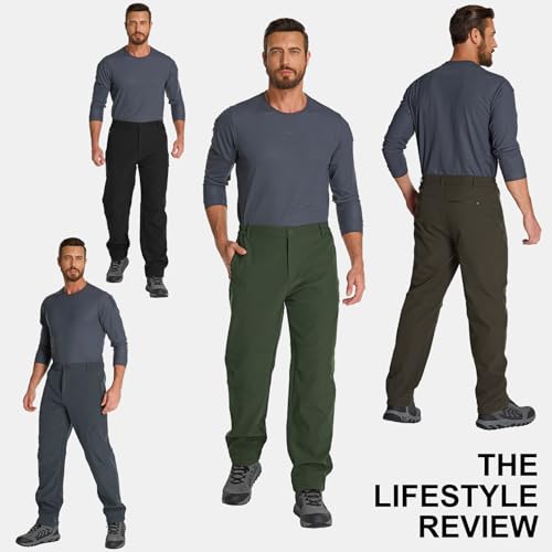 Fabric type: 100% Polyester With Fleece lining,Machine washCare instructions: Machine WashOrigin: ImportedClosure type: Button with Zipper FlyWaterproof Pants Men: Wear resistant stretch nylon surface layer with waterproof coating, effectively repels rain ,snow and oil stains, cuts the wind, prevents water molecules from penetrating; Inner layer made of skin-friendly warm fleece with superior moisture wicking treatment, breath freely, keep warmth and dry, provides the excellent comfort and flexibility.Insulated Winter Hiking Pants: 3D Cutting / High rise/ Side elastic waist allows pants to fit comfortably. Mens insulated pants features 5 large capacity zipper pockets to keep your phone,wallet,key,tactical gears or other accessories for ultimate safely, convenience and efficiency while moving.Ski Snow Pants Men: Fleece lined softshell pants featured articulated knees provides great stretch flexible, flannel lined and water resistant cargo pants for windy or snowy weathers. Boot fit designed to prevent cold air from being poured in, and the warmth will be better, also can be put into the boots without bloating and moving more freely.Softshell Pants Fishing Pants: Menβs durable winter pants has ripstop fabrics to protect your legs from gravel, scratch resistant & tear resistant, designed for outdoor enthusiasts.Men casual flannel lined pants suitable for winter outdoor activities, such as hiking, mountaineering, travelling, cycling, skiing, walking, camping, fishing, hunting, garden working, golf, motorcycle. Perfect for everyday use. first-class materials and excellent craftsmanship ensure long-lasting durability.