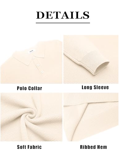 COOFANDY Men's Knit Polo Shirts Casual Long Sleeve Collared Pullover Sweaters Quarter Button Ribbed Vintage Polo Sweater