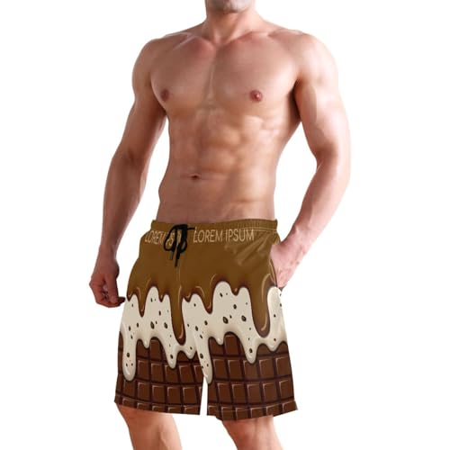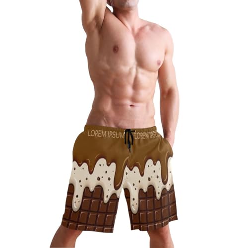 Beach Board Shorts Rich Chocolate Men's Swim Trunks Swimwear Casual Athletic Sport Short Ice Cream and Cookie