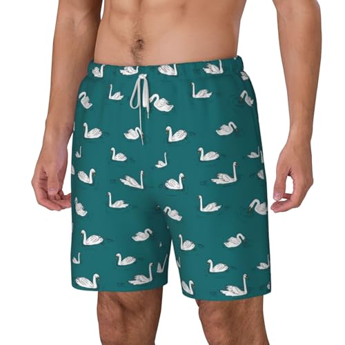 Men's Cute Swans Print rapid-Dry Mesh Swim Trunks Stretch Lining Beach Shorts Surfing Summer Vacations White