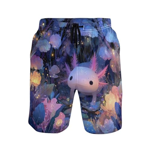 Men's Swim Trunks rapid Dry Swimming Shorts with Pocket Magical Axolotl in Garden Swimsuit Trunks