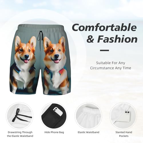Wearing Clothes Cute Corgi Dogs Print Men trendy Functionality Swim Trunks Breathable Beach Shorts Surfing Gym Fishing