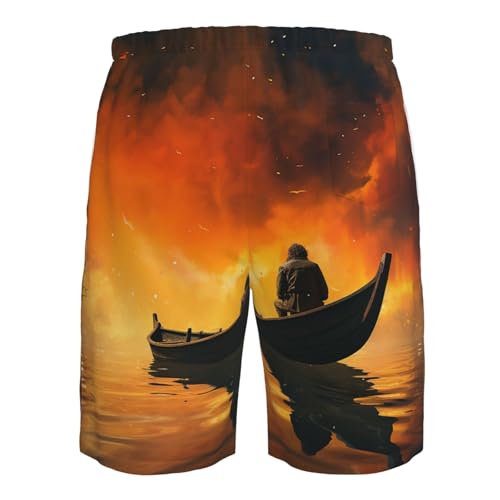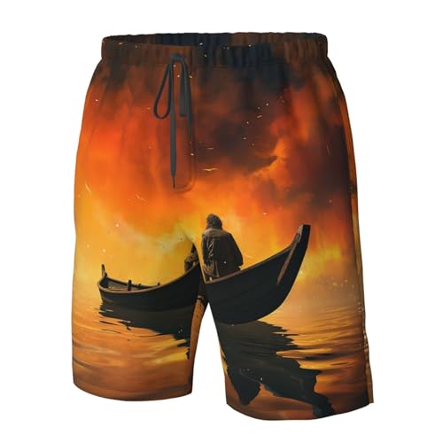 Men's Swim Trunks rapid Dry Board Shorts Mens Bathing Suit Swimsuits Man and Boat Beach Shorts with Pockets