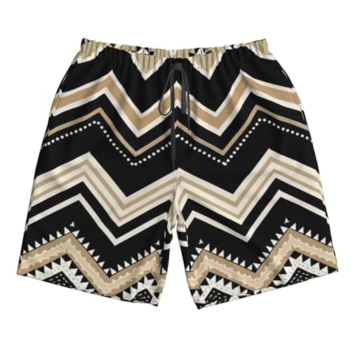 Black White Tan Zigzag Men's Swim Trunks rapid Dry Board Shorts with Pockets Casual Drawstring Beach Shorts