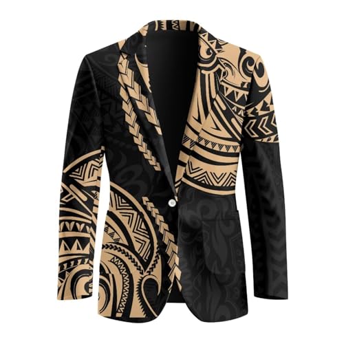 Fabric type: 100% PolyesterCare instructions: Machine WashOrigin: Imported【chic Polynesian Suit for Men】: This slim fit blazer jacket is designed with a unique pattern, making it a standout piece perfect for various occasions such as weddings, parties, and business meetings【Comfortable Fit & Fabric】: Made from a premium blend of 70% polyester and 30% viscose, this men's casual blazer ensures a comfortable wearing experience while providing the durability needed for everyday use【Versatile Samoan Suits for Men】: Whether you’re dressing up for a formal event or looking for a stylish yet casual outfit, this blazer can be effortlessly paired with t-shirts, slacks, or formal shirts to achieve your desired look【Thoughtful Design Features】: The men's long sleeve blazer comes with one-button closure, notched lapel, and strategically placed flap pockets for convenience. It also boasts a tailored slim waistline that highlights your physique【Perfect Gift Option】: Ideal for anyone in need of a fashionable upgrade, this blazer makes for a thoughtful gift for fathers, husbands, sons, and friends. Suitable for birthdays, graduations, and special occasions, it's a versatile addition to any wardrobe Perfect for everyday use. premium materials and excellent craftsmanship ensure long-lasting durability.