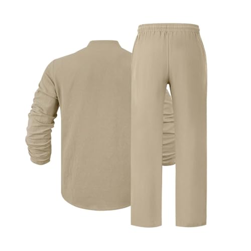 Mens Casual Two Piece Outfits Button Down Long Sleeve Shirts and Elastic Waist Pants Set Trendy Casual Vacation Outfit