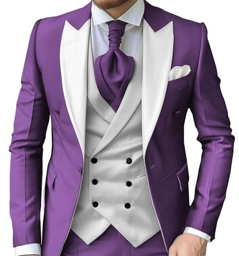 Fabric type: 70% Polyester, 30% ViscoseOrigin: ImportedFeatures:Contrast color 3 piece suit.Solid blazer jacket: features a chic buckle closure and a notched lapel, slim fit style;Pant with flat front, 2 slant pockets.Occasions:Easy to match with any formal/business shirt in wedding/party/business/graduation/date/work/meeting/prom,good gift for your friend,father,brother and son.Colors and Sizes:Available in multiple colors and sizes, you can choose the right size and color based on your personal preference and body shape.Care Instruction:Dry clean recommended if conditions permit,If you have to hand wash it,please keep the water temperature below 40 degrees and wash gently.steam ironing,hang the suit on the hangers when you are not wearing them.We provide professional customized services to meet your individual needs. If you have any questions, please feel free to contact us and we will try our best to provide the best service. Perfect for everyday use. premium materials and excellent craftsmanship ensure long-lasting durability.