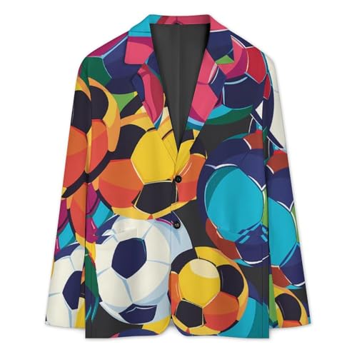 trending ! Colorful Soccer Balls Mens Casual Blazer Button Suit Jacket Lightweight Sport Coat for Work Business