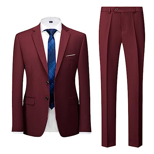 Men's Casual Suit Suit Pants 2-Piece Set Men's Solid Color Wedding Two Button Suit Suit Pants Casual Business Dress