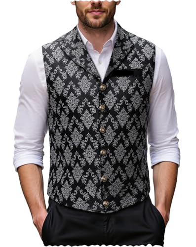 Fabric type: Polyester,ViscoseCare instructions: Dry Clean OnlyOrigin: ImportedMen's formal printed business slim fit suit vest .This vest can be easily paired with various pants and suit jacketsVest Design: Classic suit vest, designed with 1 chest pocket, 6 button front closure,Paired with exquisite embroidered prints, the entire vest looks even more elegant adjustable back strap offers you more accurate fit.Material: Made of polyester and synthetic silk, this fabric has a soft texture, is resistant to dirt and easy to maintain, and is very comfortable to wear on the bodyOccasions : This suit vest tuxedo waistcoat for formal or informal occasions ,such as Business, Wedding Banquet, Date, Working, Party or Daily for All seasons. it can be given to friends, families, colleagues, Father's Day, Valentine's Day, Christmas, Halloween, Graduation ceremony, Wedding anniversary, Thanksgiving DayVest Size: XS S M L XL XXL XXXL. Please refer to the size chart carefully of the mens vest in order to choose your own size. Perfect for everyday use. premium materials and excellent craftsmanship ensure long-lasting durability.