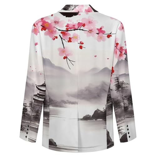 Mount Cherry Flowers Water Men's Casual Blazers Slim Fit Sport Coats Blazer Two Buttons Suit Jacket for Work Party