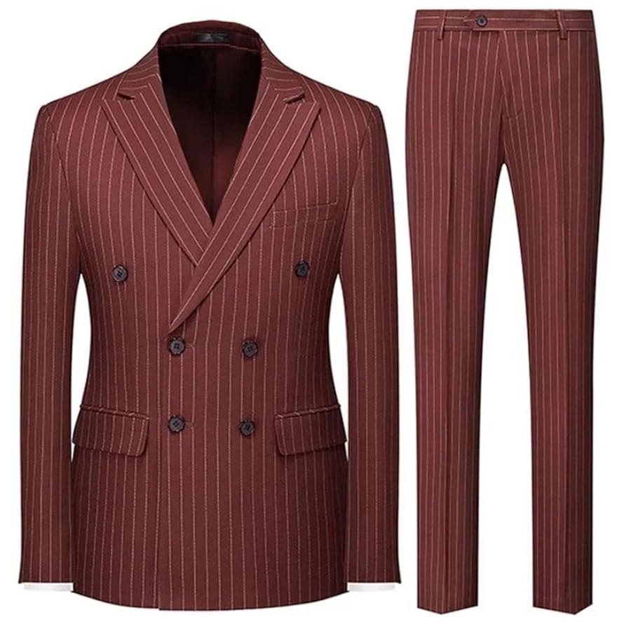 Men 2-Piece Tuxedo Suit Double Breasted Slim Fit Pinstripe Formal Suit with Blazer and Pants