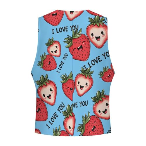 trending ! Strawberry I treasure YOU Men's Suit Vests Business Formal Dress Vest V-Neck Waistcoat for Wedding Casual